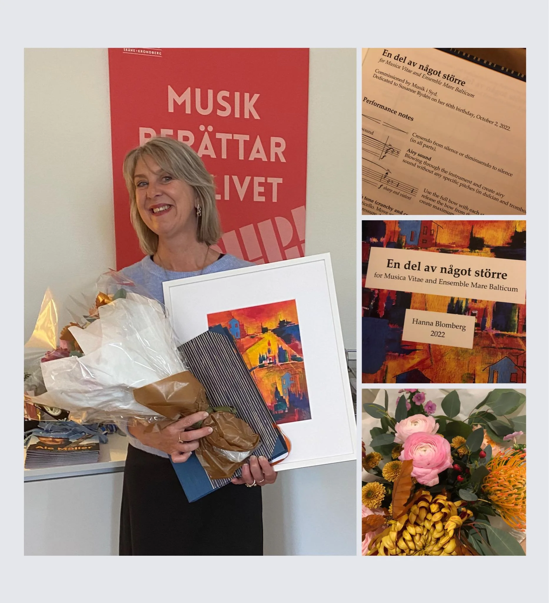 I have written a commissioned work for Musik i Syd dedicated to Susanne Rydén on her 60th birthday, October 2, 2022. The piece will be premiered at the production Alla tiders musik with Musica Vitae and Ensemble Mare Balticum.
